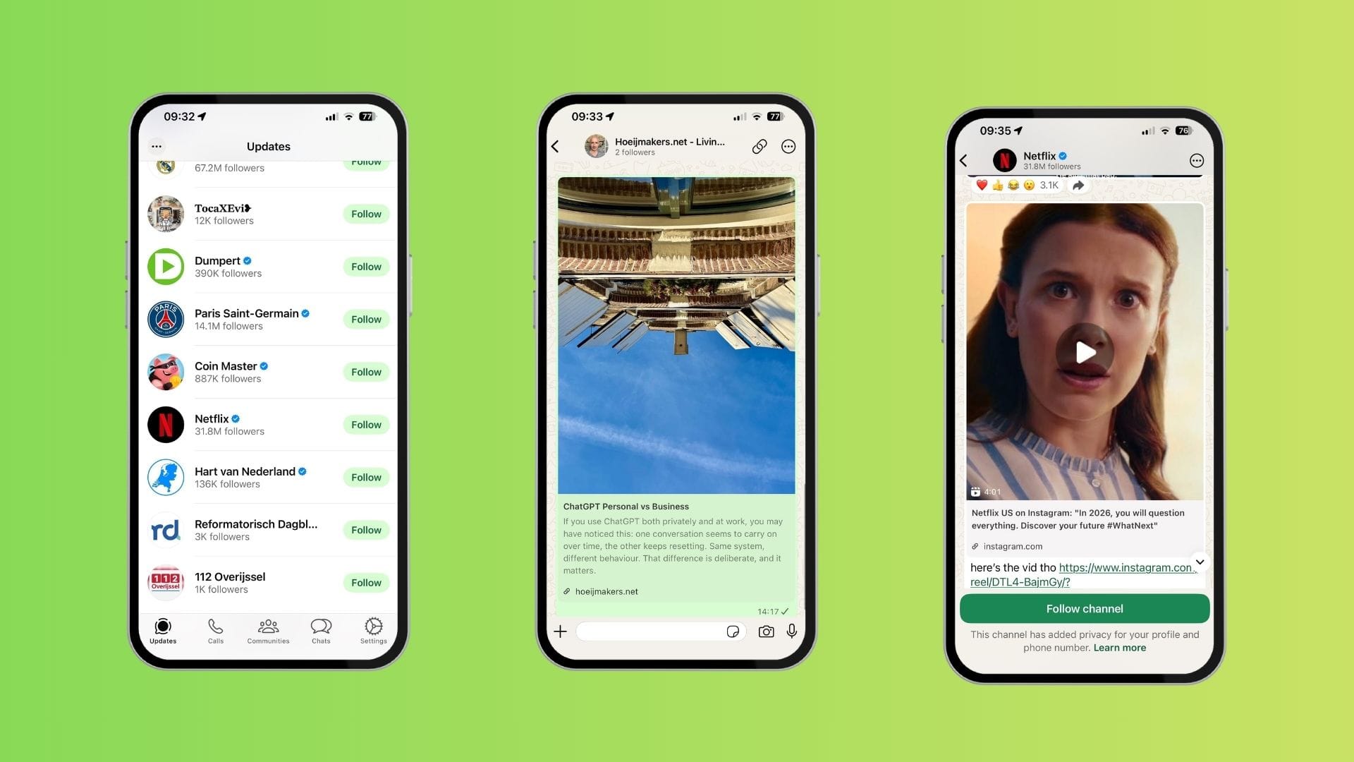 Daarmee is WhatsApp niet alleen een communicatiemiddel gebleven, maar ook een plek geworden waar informatie publiek wordt verspreid en passief wordt geconsumeerd. Voor miljoenen gebruikers tegelijk.
